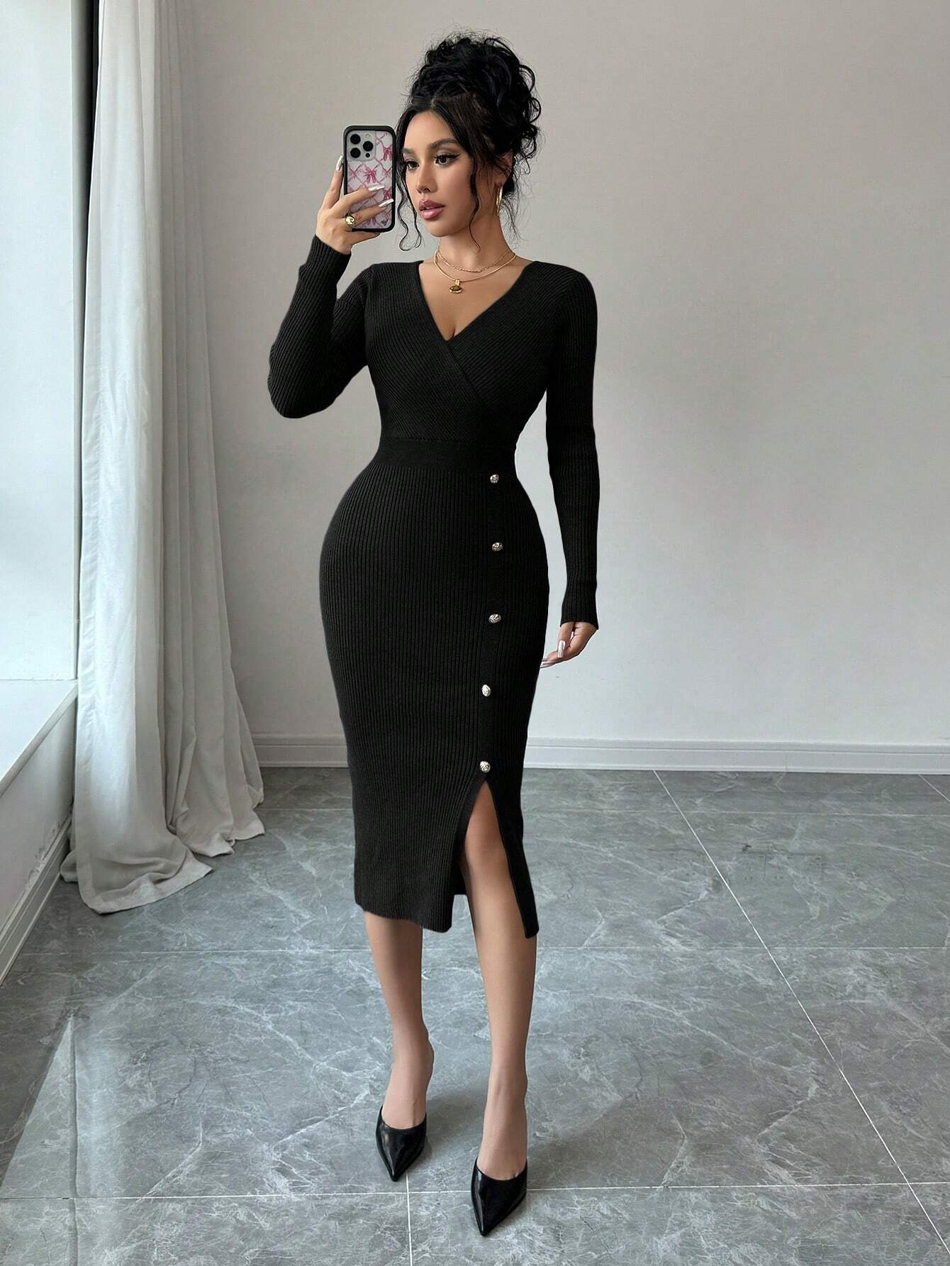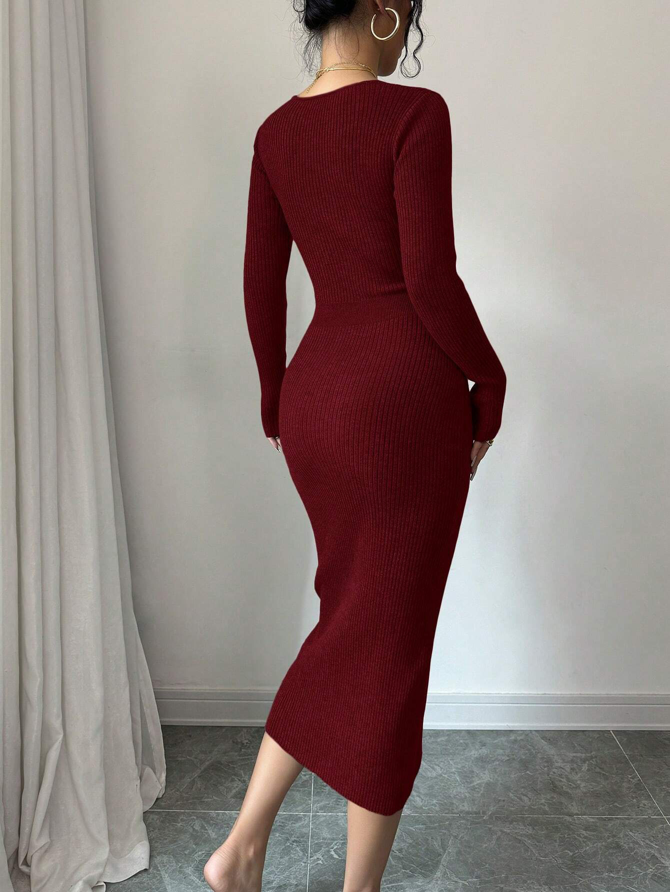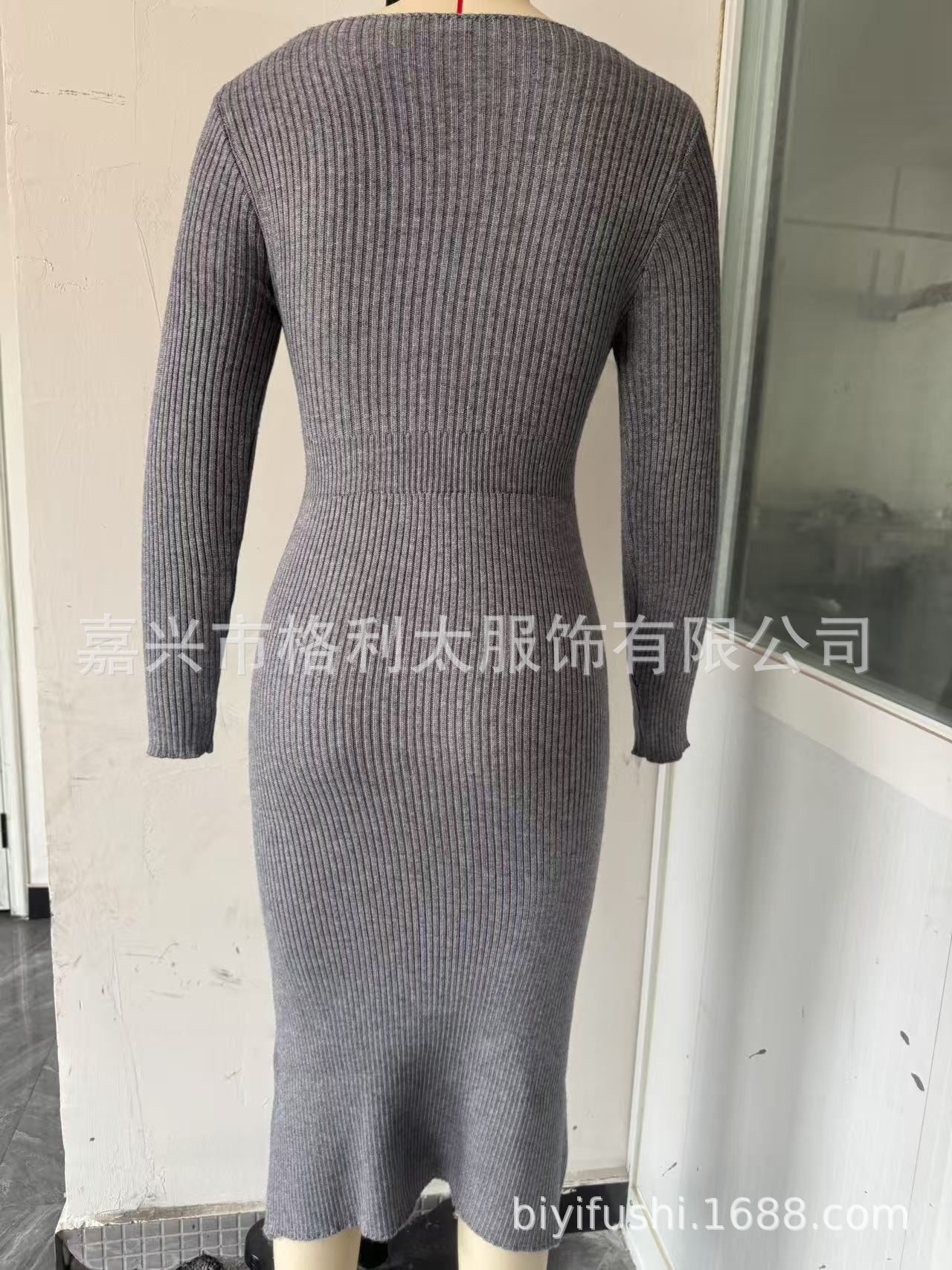 A Mid-Length French Dress For The Autumn And Winter Of 2025, With A Cinched Waist And A Hip-Hugging Skirt, Is Paired With A Tight-Knit Dress As A Base Layer
