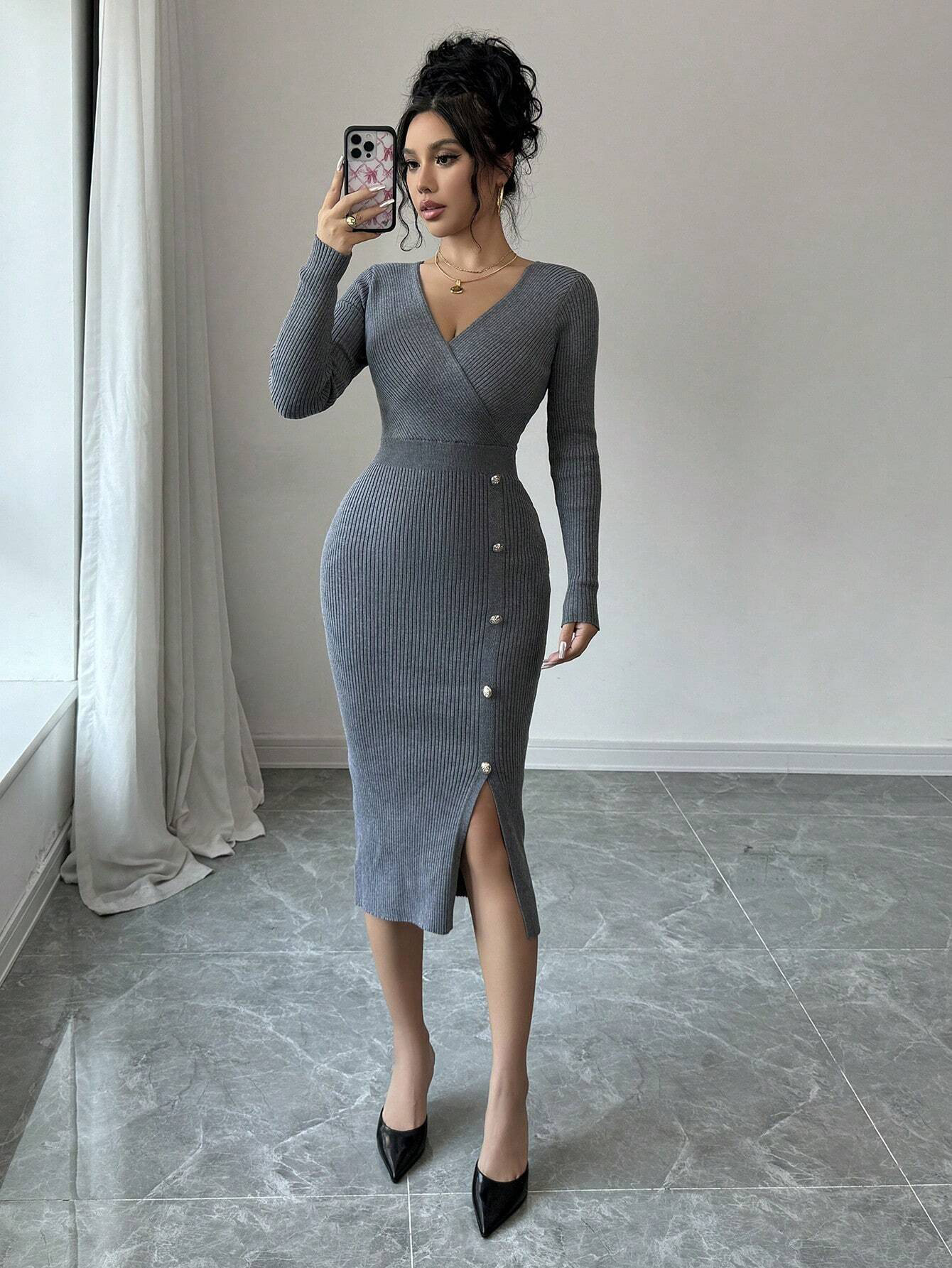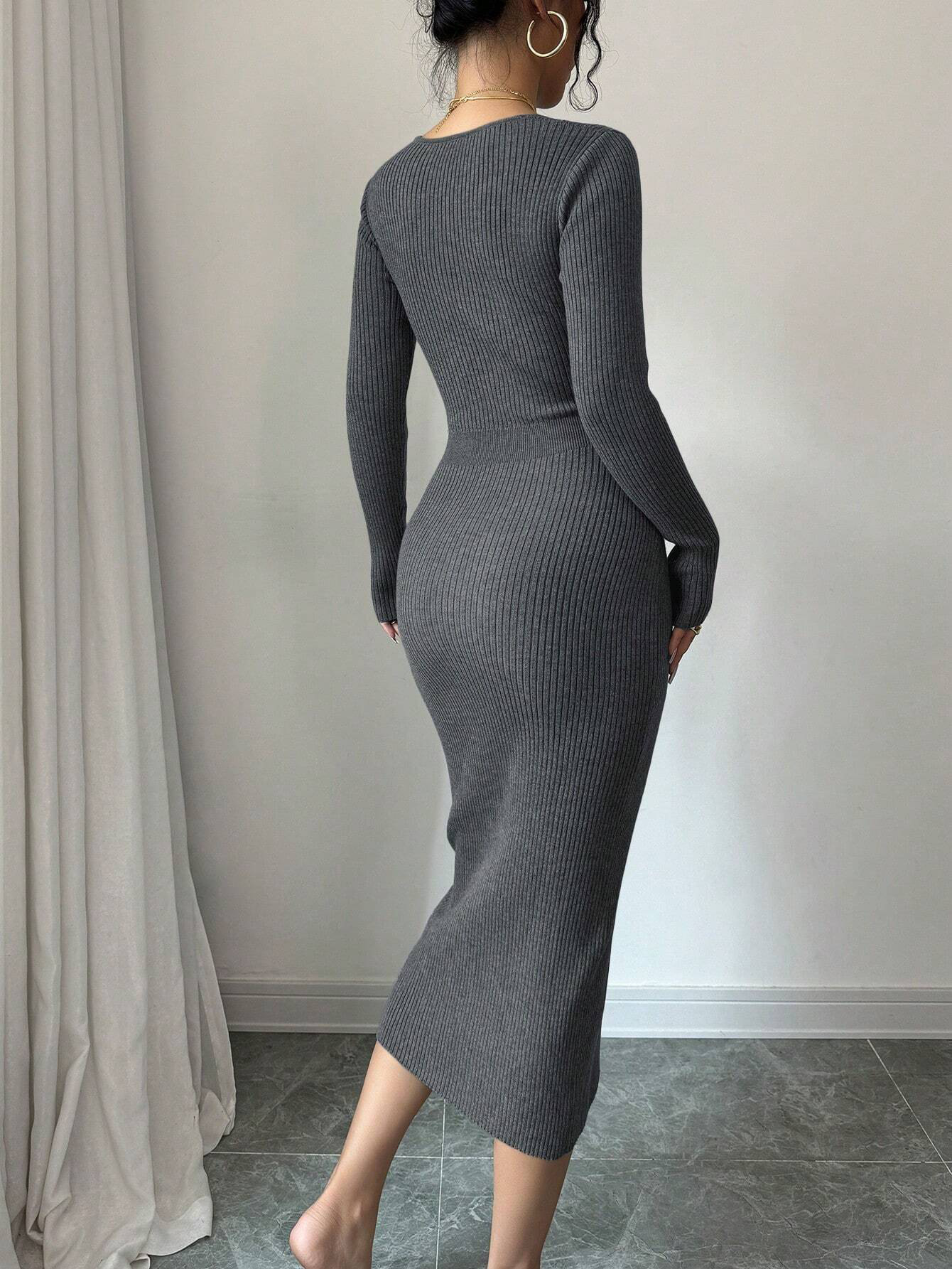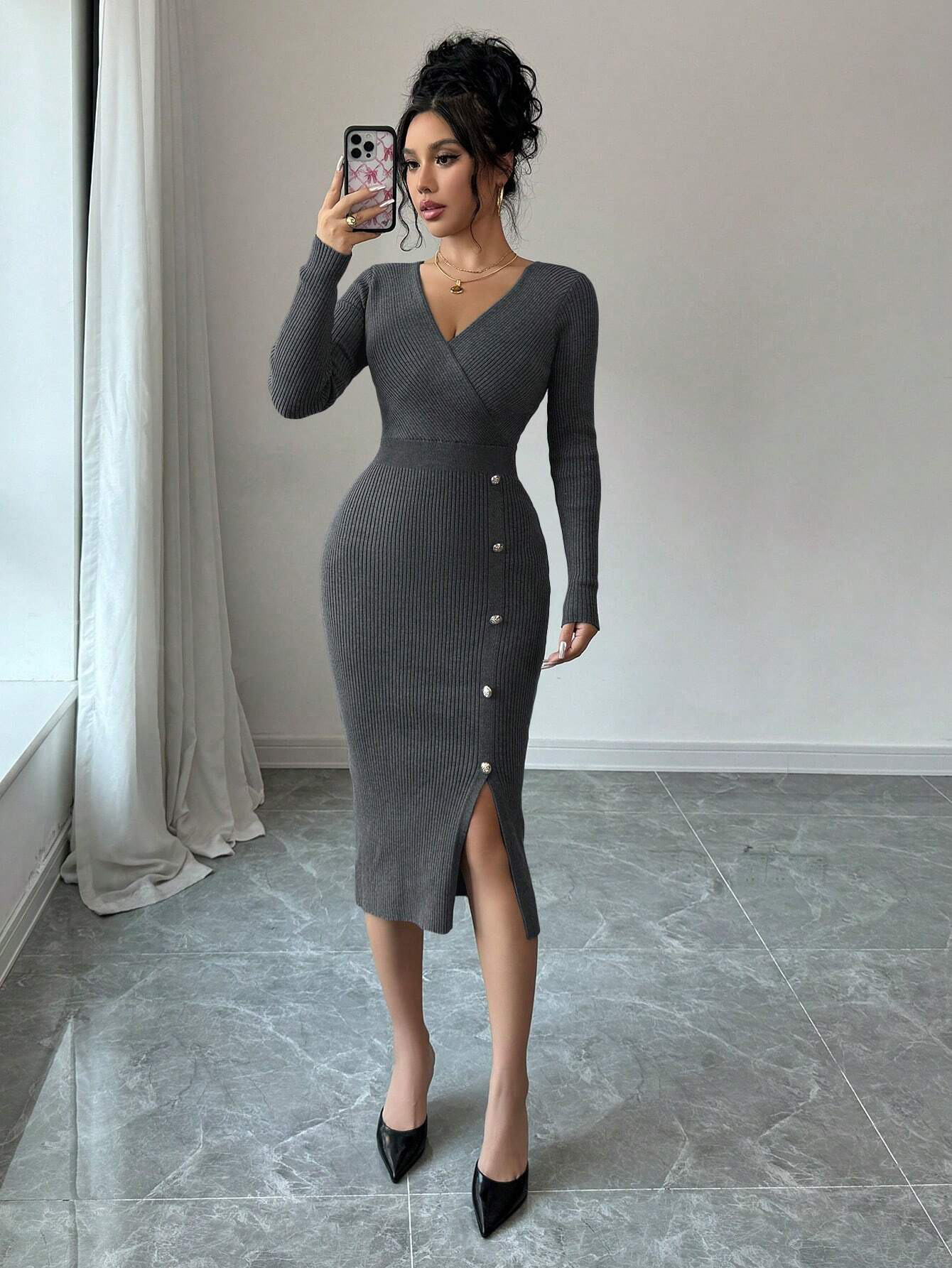A Mid-Length French Dress For The Autumn And Winter Of 2025, With A Cinched Waist And A Hip-Hugging Skirt, Is Paired With A Tight-Knit Dress As A Base Layer