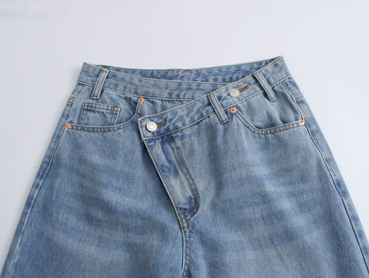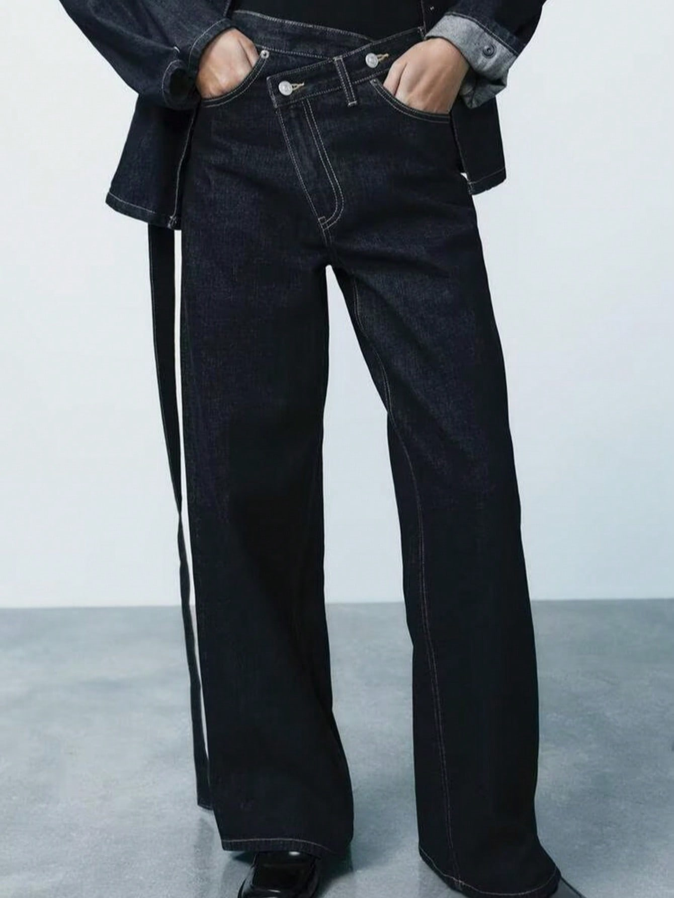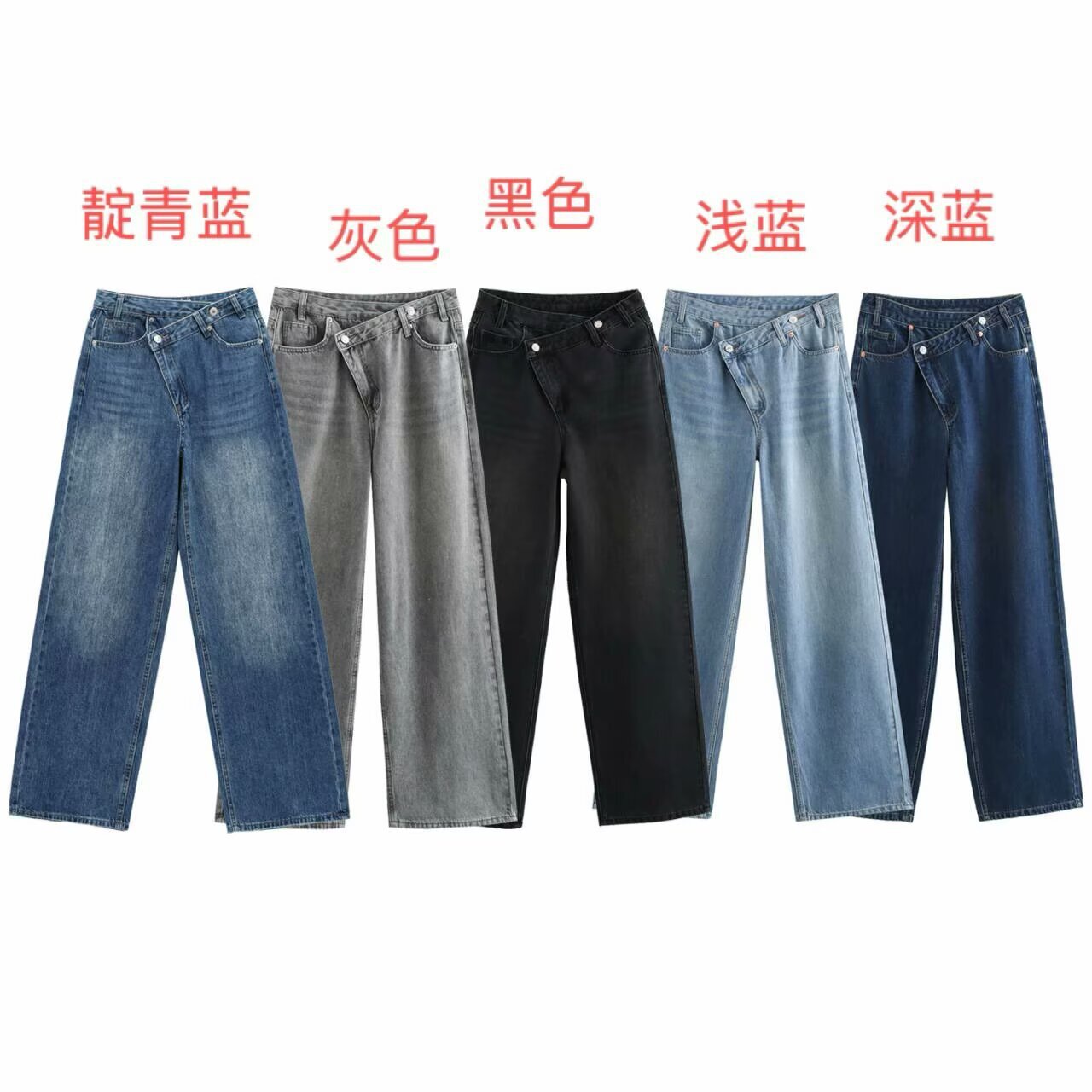 Trafza Cross-Border Amazon Spring Festival European And American Style Women's Clothing Design Sense, Double-Breasted Trousers, High-Waisted Wide-Leg Jeans