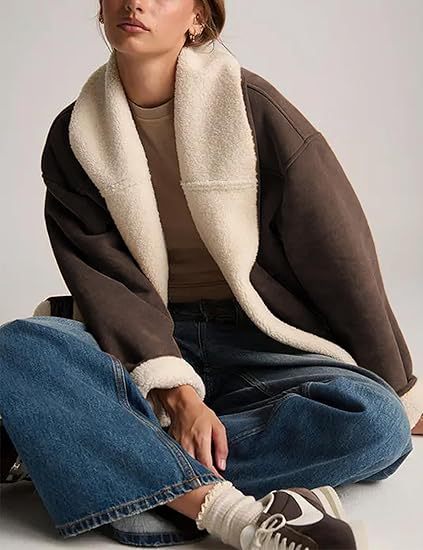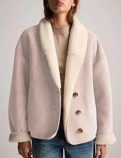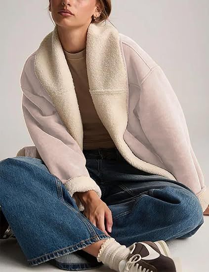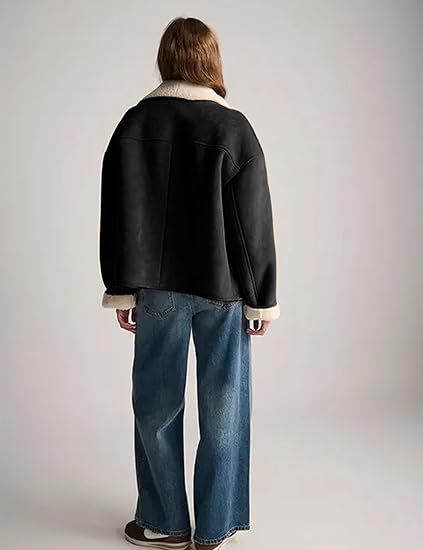 Women's Suede Jacket, Lambskin Casual Coat, Loose Lapel, Warm Winter Coat With Pockets X0050